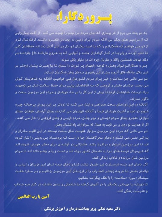 - 1395/12/30 - پیام نوروزی به مناسبت آغاز سال ۱۳۹۶