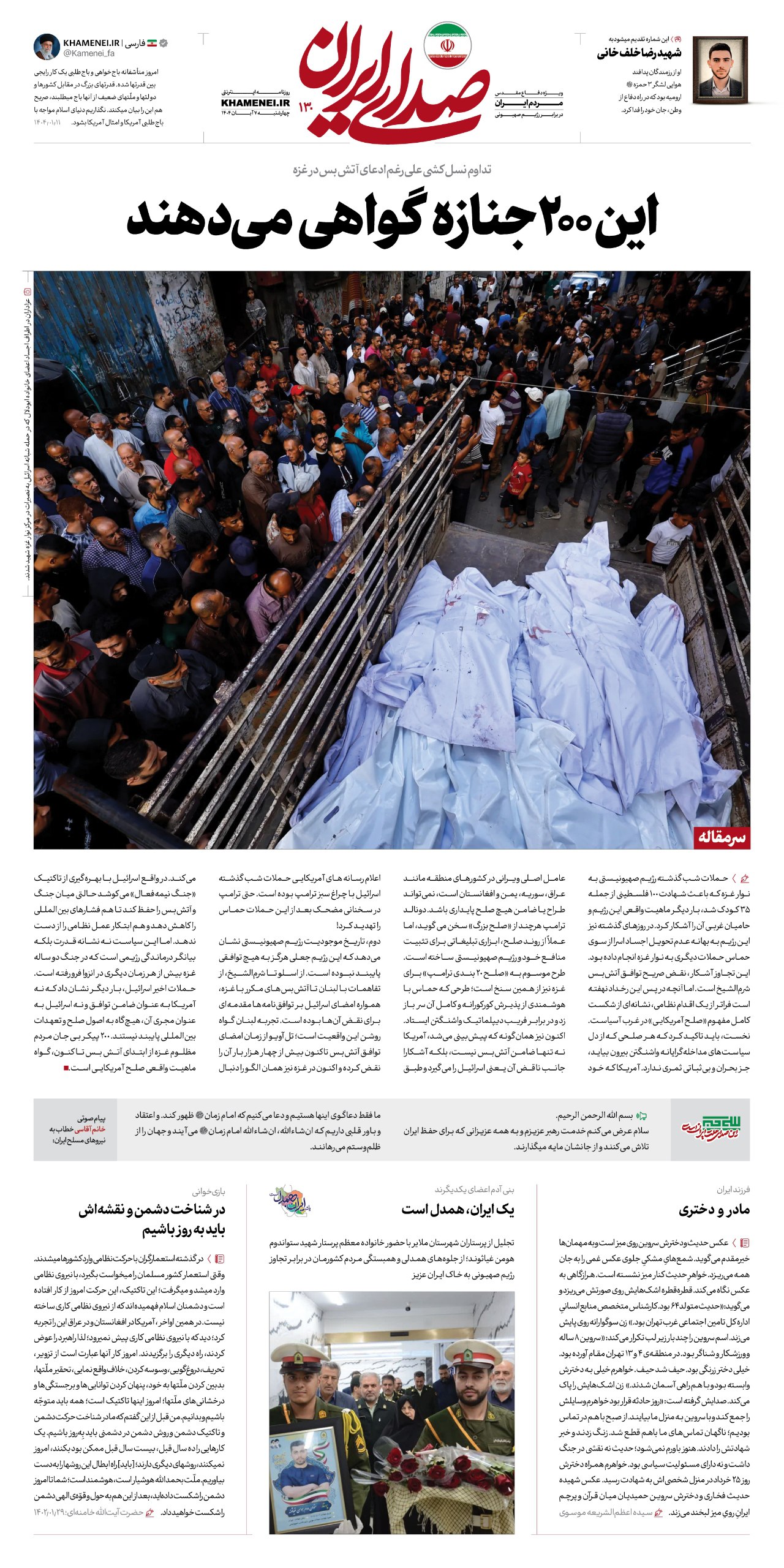 «صدای ایران»، روزنامه اینترنتی رسانهی KHAMENEI.IR که از روزهای آغازین جنگ ۱۲ روزه رژیم صهیونی علیه ایران با مأموریتی که ذکر شد آغاز به کار کرد، حال و در زمان توقف آتش سعی دارد تا بهصورت روزانه همراه ملّت ایران باشد. محورهای مهم و مرتبط را از لابهلای سیل اخبار و اطلاعات درست و نادرست بیرون کشیده، سره را از ناسره جدا کرده و وضعیت راهبردی جمهوری اسلامی ایران را آنگونه که هست روایت کند. «صدای ایران» صدای ملّت ایران خواهد بود و راوی ایستادگی و مقاومت آنها.