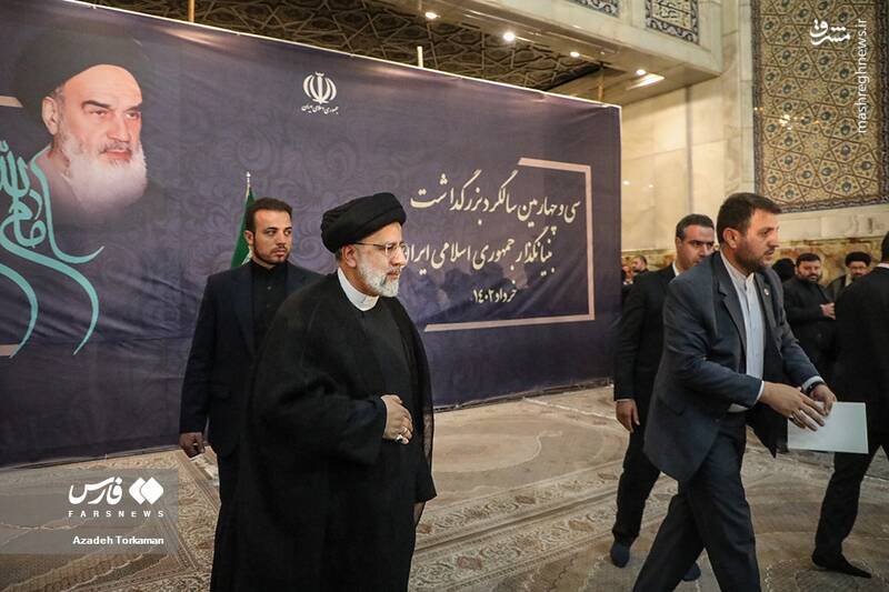 سی و چهارمین مراسم بزرگداشت سالگرد ارتحال حضرت امام خمینی (ره) شامگاه جمعه (۱۳ خرداد ۱۴۰۲) با حضور آیت الله «سید ابراهیم رییسی» رئیس جمهور و جمعی از زائرین در حرم امام خمینی (ره) برگزار شد.