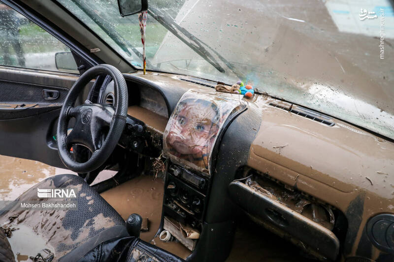 - تصویری عجیب از نیسان غرق شده در سیل مشهد